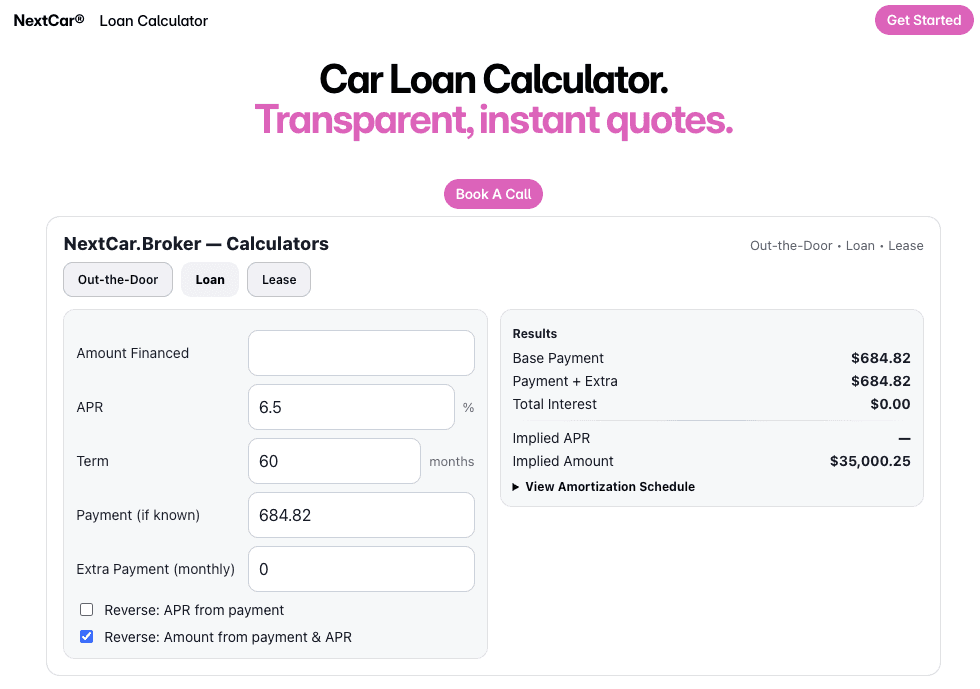 Start with your ideal monthly payment, and we’ll show you the total loan and car value that matches your budget.